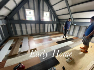 半端な床板をバラバラに貼ってます!