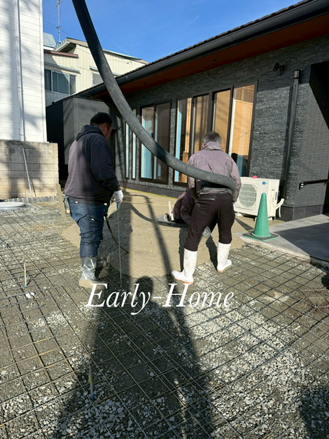 駐車スペースの土間コンクリート打設中!