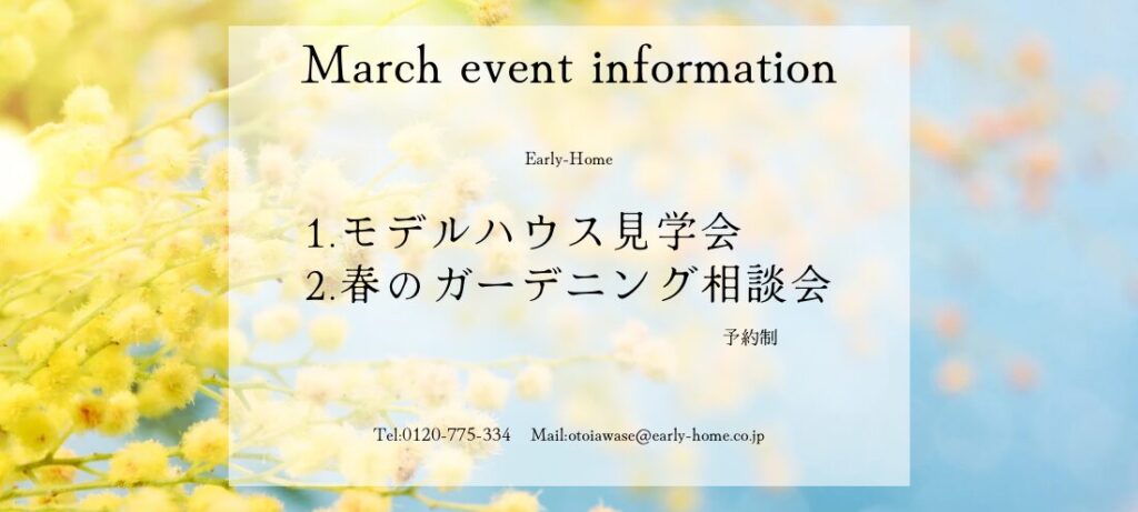 Early-Homeでは、3月に2つのイベントを開催いたします。